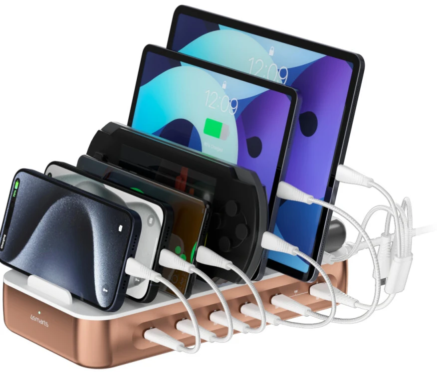 Die 4smarts Team Ladestation bringt Ordnung in deinen Alltag: Alle deine Geräte – egal ob Smartphone, Tablet, kabellose Kopfhörer, E-Book-Reader oder VR-Brille – können zentral geladen werden. Das spart Platz, reduziert Kabelchaos und sorgt für einen aufgeräumten Arbeitsplatz. Diese USB-Ladestation ist die perfekte Lösung, um alle Geräte an einem Ort zu halten und gleichzeitig griffbereit zu haben.